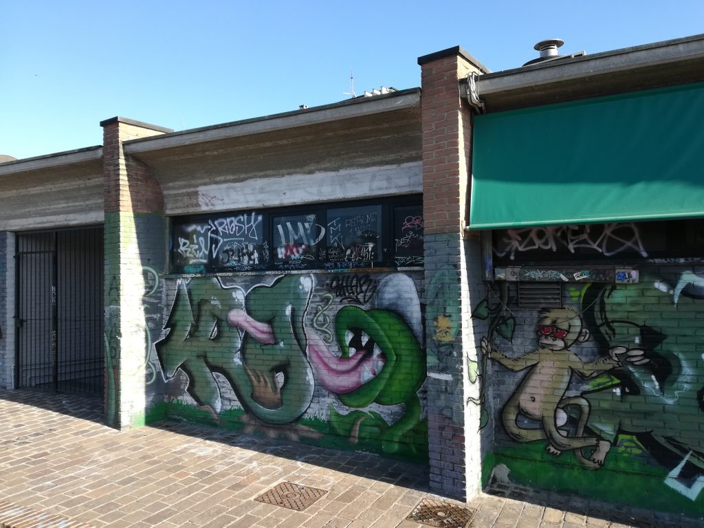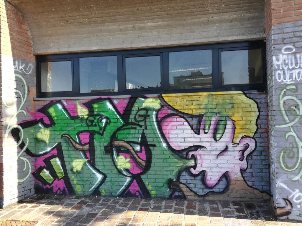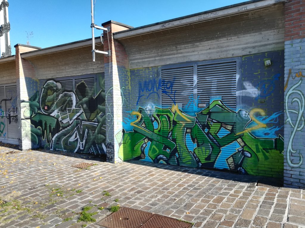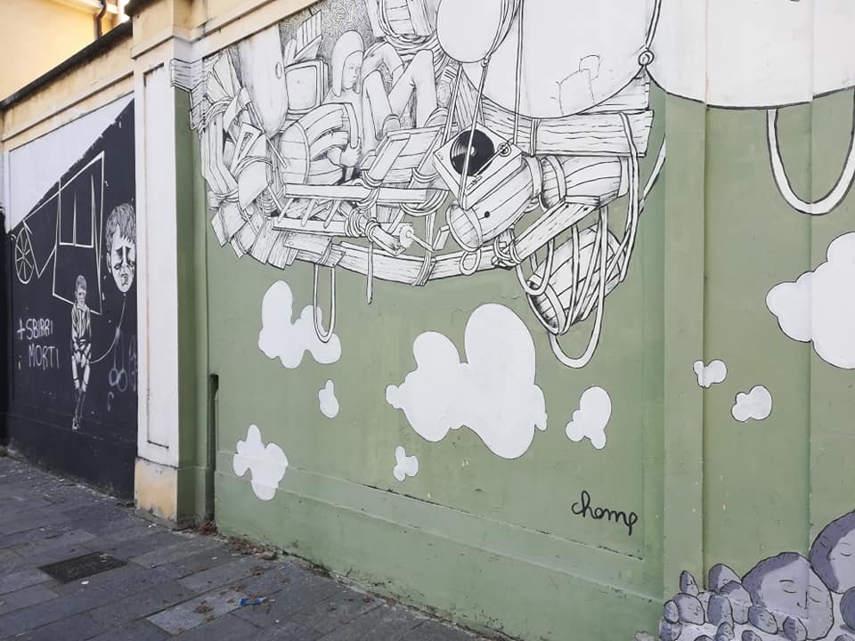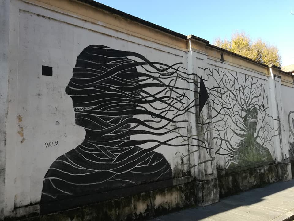 Se, invece di proseguire, ci si volesse fermare a osservare il piazzale, due cose salterebbero agli occhi. La prima è il monumento ai caduti delle barricate del ’22. Costituito da una serie di lastre in pietra poste in vari punti del giardino al centro del piazzale, dalla sua creazione, nel ‘97, è stato per anni lasciato a se stesso, come il resto del piazzale, in un processo di costante degrado. La seconda è costituita da una serie di murales dipinti sulle mura del liceo. Se il monumento, però, si confonde abbastanza bene con il resto dello spazio, i murales, esempio di street art, non si possono non notare immediatamente. I disegni dal gusto contemporaneo e i colori sobri ma allo stesso tempo accesi danno un senso di vita all’ambiente circostante.