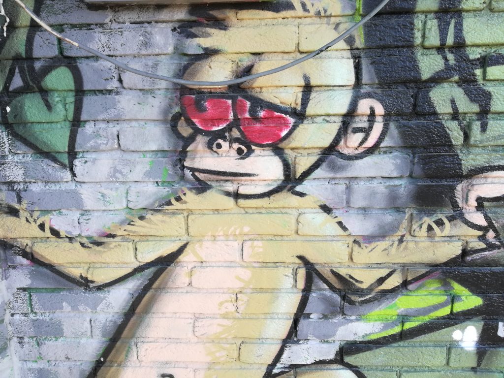 Girando intorno alla struttura non si può non notare il passaggio dell’arte. Ogni lato dell’edificio, tranne quello davanti, è circondato da diverse specie di animali. Su un fianco è presente, infatti, un meraviglioso esempio d’arte pop: un pinguino piccolo e paffuto, che cavalca un’onda di mille colori. Per quanto chiunque si renda perfettamente conto dell’assoluta particolarità dell’opera, molto più vicina a quella di una galleria d’arte, il servirsi dello sfondo di mattoni l’integra alla perfezione con l’edificio.